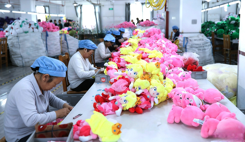 機(jī)器轟鳴的車間里,已經(jīng)制作完成的毛絨玩具正有序地在流水線上移動,經(jīng)過嚴(yán)格的檢查后,這些玩具會被精心地包裝,裝入漂亮的包裝盒中,最后打包成整箱被整齊地裝上廠區(qū)外的車輛,隨時準(zhǔn)備發(fā)往世界各地。近日,記者在陜西省安康市恒口示范區(qū)恒安玩具公司了解到,近年來,安康市通過探索“園區(qū)總部+新社區(qū)工廠+家庭工坊”模式,安康毛絨玩具大企業(yè)、代工小作坊扎堆聚集,安康毛絨玩具屢次出圈,成為國內(nèi)毛絨玩具產(chǎn)業(yè)四大基地之一。