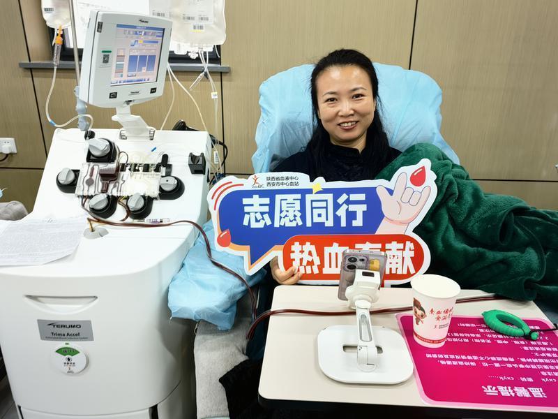 清晨的血站內,行動團成員們有序地進行健康問詢和血液檢測。常年參加馬拉松的西安市勞模魏紅艷這次沒有出現在賽道上,而是完成了人生的第一次獻血。她說:“能通過這種方式幫助他人、延續生命,比沖過終點線更有意義。”