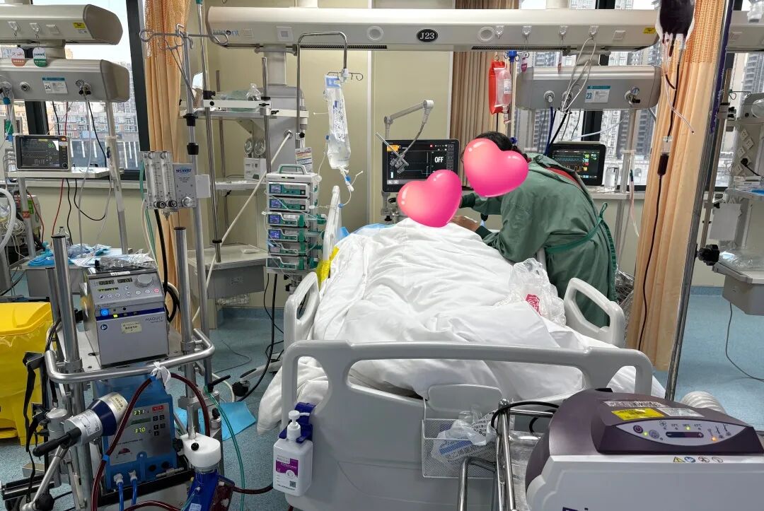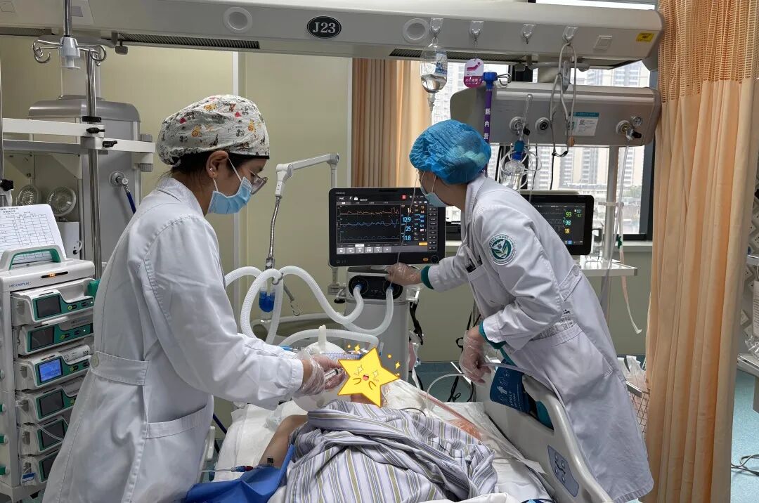 很快,駱大叔便在重癥醫學科接受了清醒狀態下VV-ECMO支持。因其氣喘難以平臥,ECMO團隊在患者30°半臥位狀態下為他快速完成右側股靜脈及右側頸內靜脈穿刺置管,不到20分鐘時間便啟動VV-ECMO治療。隨著ECMO轉機成功,患者氣短癥狀迅速得到緩解,生命體征趨于平穩。