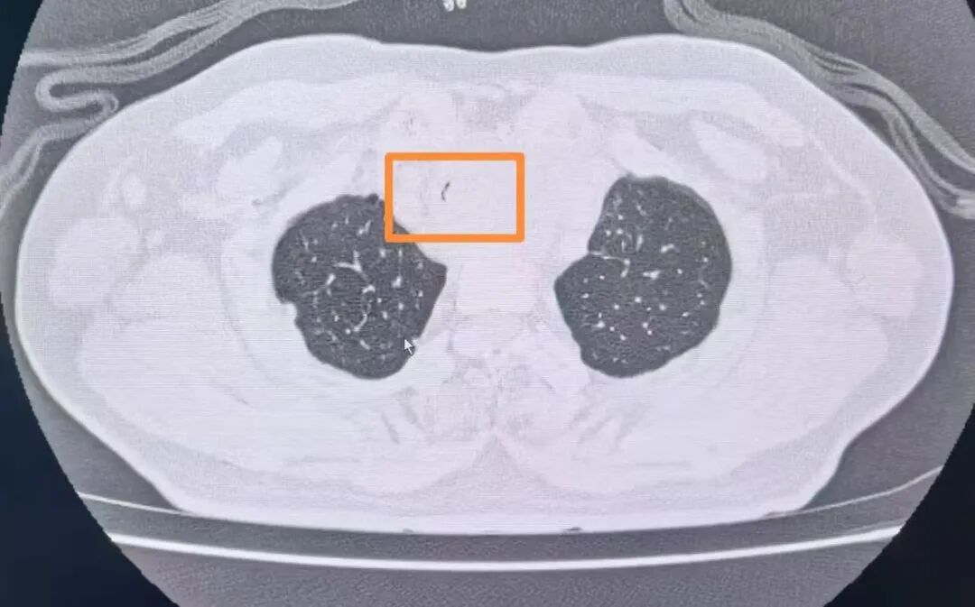經復查胸部CT發現患者氣管已經出現明顯狹窄,內徑最窄處直徑不到2mm(正常成年男性氣管內徑為18-22mm),呈“一線天”樣改變,整個氣管僅靠一條細微的縫隙維持著少量的通氣,意味著病人隨時有發生窒息的危險。甲乳外科立即組織開展了多學科討論。經過對病情的充分分析,呼吸與危重癥醫學科副主任陳暉建議緊急行氣管內支架置入術解除大氣道梗阻。